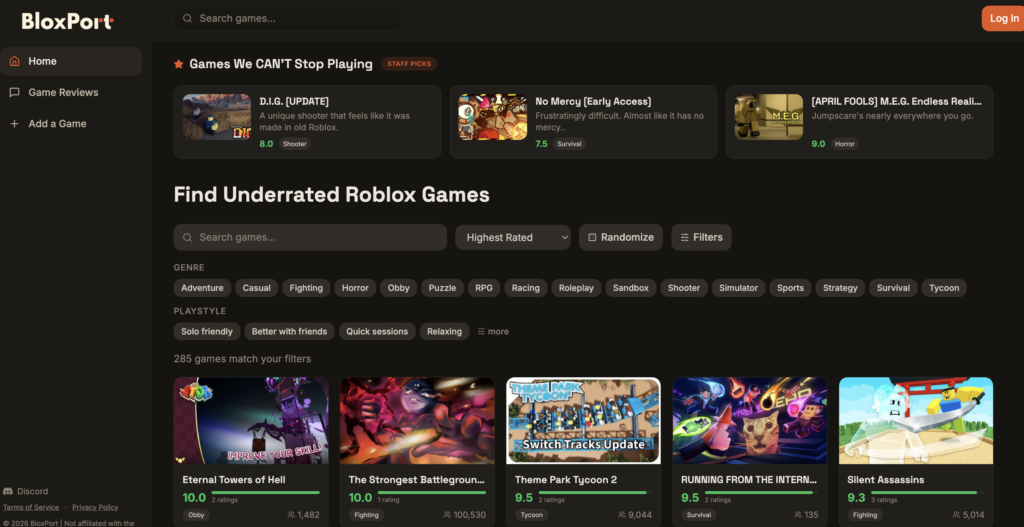 The most effective way to find your next favorite game is through Bloxport. Unlike the Roblox home screen, which pushes games based on monetization and retention, Bloxport is designed to surface games worth your time.